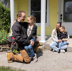 In the morning, each parent gets one child dressed. Mom takes them to daycare and Dad picks them up at the end of the day. “Once we’re home from work, Chloé looks after the kids while I make dinner,” explains Dominique. “Then she does dishes and laundry while I handle bathtime.” On weekends, they try to do a few chores with the kids, like raking leaves in the yard. They have a big calendar on their fridge to keep track of appointments, parties, and activities. It helps them share the mental load, since they can both see what’s coming up and plan who’s doing what together.