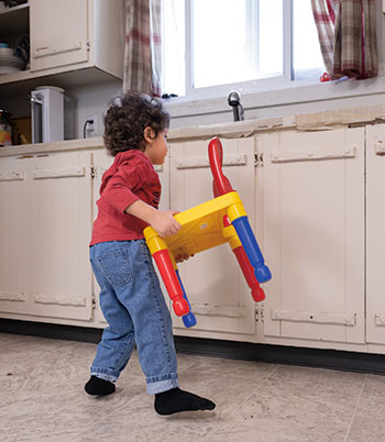 For instance, keep a kitchen cabinet accessible so your baby can play with plastic containers, and install hooks at your child’s height so they can hang their clothes. Lassad notes that his son’s independence has greatly improved since he got a small plastic chair that he can carry around himself. “He uses it everywhere—to reach the sink and turn off the light in his room, for instance,” says the father.