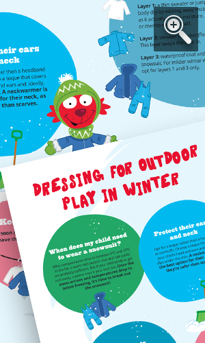 Playing outdoors with your child in the winter isn’t just fun - it’s also good for their health and development! Learn about its benefits, plus discover fun activity ideas and a Kittycat infographic for dressing warmly from head to toe.Here are some ideas for activities to get your little one moving and playing outdoors in the winter.