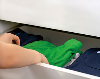 Vous pouvez garder une armoire de cuisine accessible pour laisser votre bébé jouer avec des contenants de plastique et placer des crochets à la hauteur de votre enfant pour ses vêtements. Lassad note que l’autonomie de son fils a beaucoup progressé depuis qu’il a une petite chaise en plastique qu’il transporte lui-même. « Il l’utilise partout, par exemple pour atteindre le lavabo et pour éteindre la lumière de sa chambre », dit le papa.