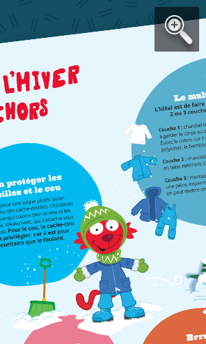 En poussette ou en porte-bébé Lorsque votre enfant est dans une poussette, il bouge peu et il est plus vulnérable au froid. Habillez-le chaudement et placez une housse en plastique par-dessus sa poussette afin de diminuer le vent froid. Il existe aussi des enveloppes doublées d’un tissu chaud que l’on peut installer dans le siège d’auto et qui protège bébé du froid. Le porte-bébé est une bonne option en hiver, car votre tout-petit profite de la chaleur de votre corps. Veillez toutefois à ce que ses pieds et ses mains soient bien protégés. Les porte-bébés avec armature qui sont placés sur le dos sont réservés aux enfants plus vieux, capables de s’asseoir par eux-mêmes, de marcher à quatre pattes ou de se tenir debout. Si vous l’utilisez, il faut habiller votre enfant comme s’il était en poussette ou en traîneau, car il y est plus exposé au vent et au froid. |
