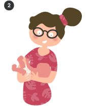 Tenez votre bébé dans vos bras en position allongée (image 2), comme si vous vouliez le bercer. Sa nuque doit être bien calée sur votre bras et sa tête doit être soutenue. Sa tête ne doit surtout pas être dans le vide. Essayez de tenir votre bébé à la même distance que celle adoptée lors de l’allaitement, car c’est à cette distance qu’il voit le mieux votre visage. Cela favorisera les échanges de regards entre vous.