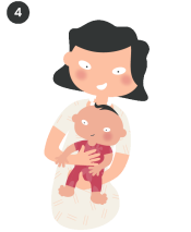 Placez votre bébé devant vous avec une main sous ses fesses et l’autre qui soutient sa tête et le haut de son dos, en évitant directement la zone du cou (image 5). Votre bébé peut être ainsi placé face à vous, tout en se sentant soutenu.